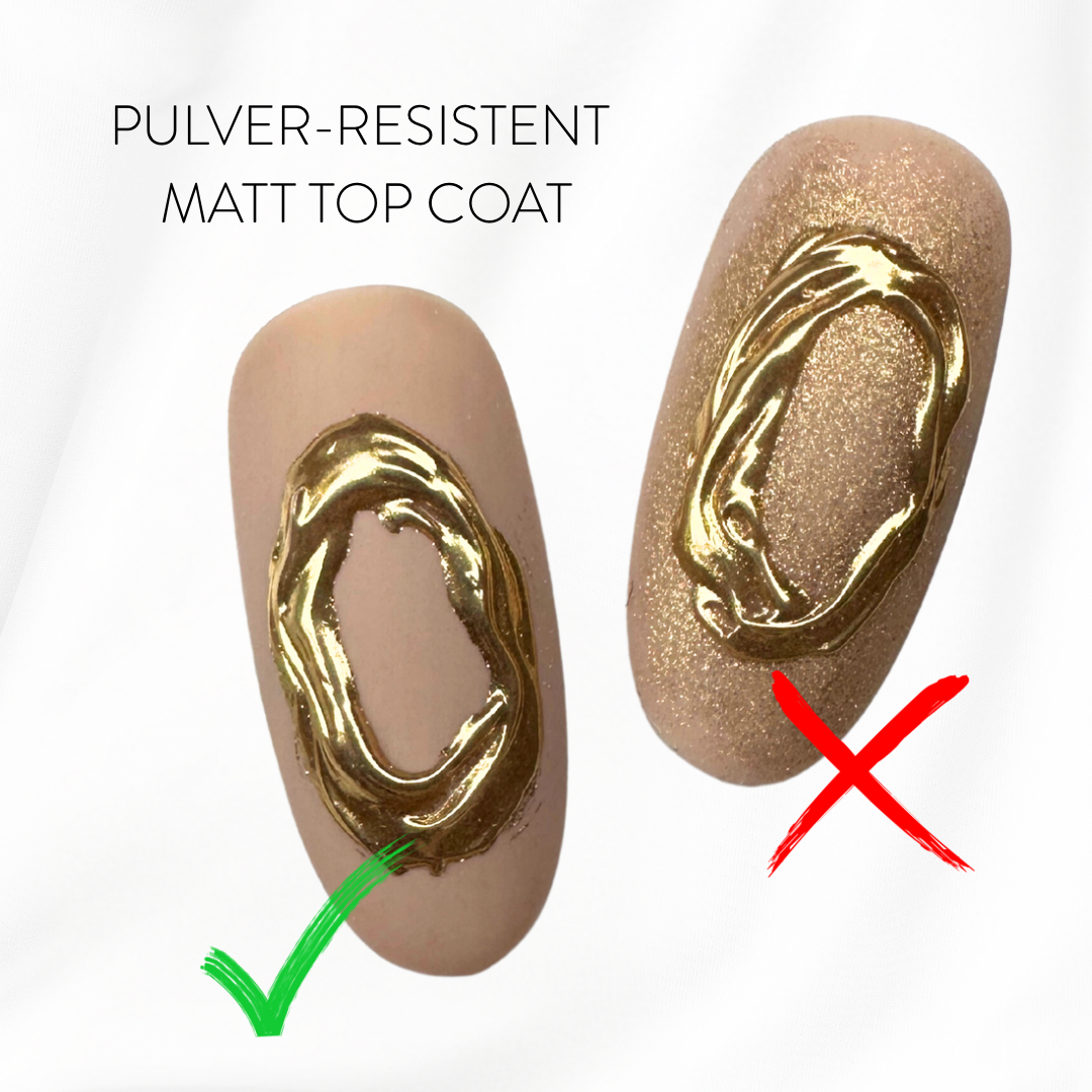 Chrome Buddy är inte optimal som ensam top coat om du önskar ett hållbart matt resultat, den är till för att isolera chrome/pulver från resten av din design. Vill du ha ett helt matt, resultat rekommenderar vi Satin Matte Top Coat som har en oslagbar matt finish.