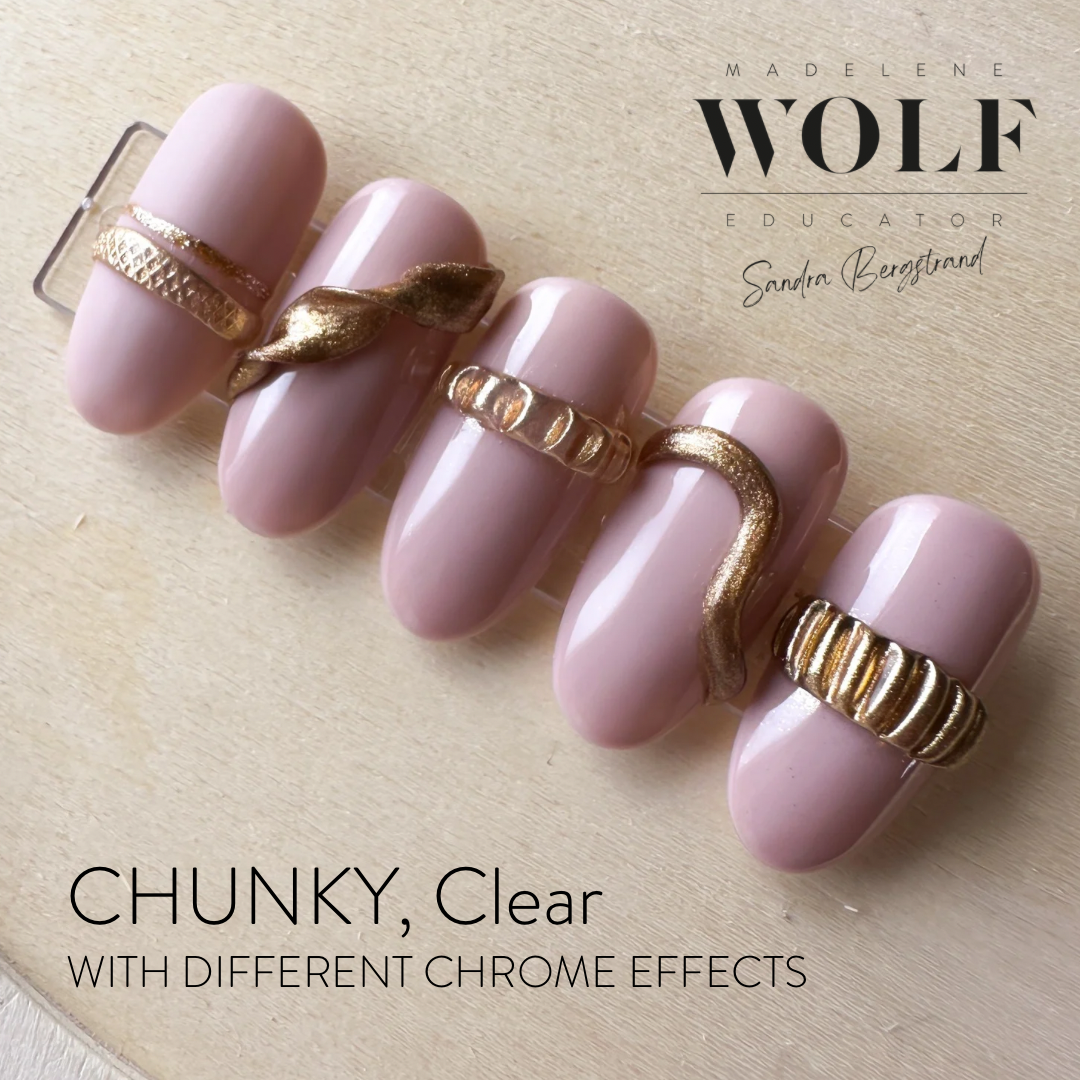-Blanda in chrome i din chunky gel innan du applicerar den på nageln så får du en färgad massa istället.
